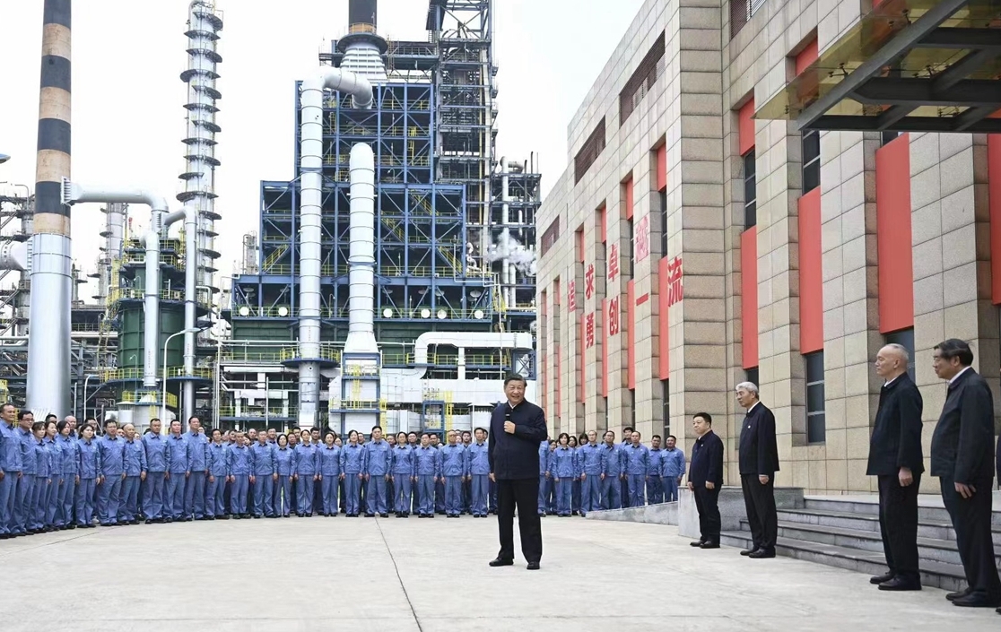 实验室外,企业员工们围拢过来纷纷向总书记问好。习近平亲切地对大家说,石化产业是国民经济的重要支柱产业,希望你们按照党中央对新型工业化的部署要求,坚持绿色、智能方向,扎扎实实、奋发进取,为保障国家能源安全、推动石化工业高质量发展作出新贡献。